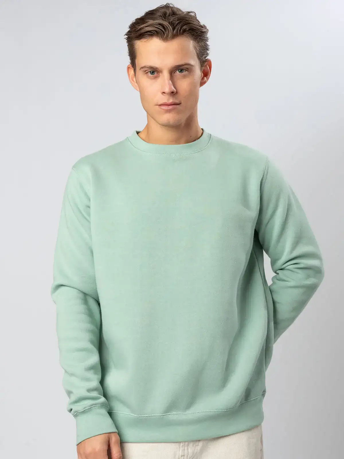 70% Cotone, 30% Poliestere. Felpa girocollo con interno felpato per maggiore morbidezza e calore. Collo, polsini e orlo inferiore in costina, con rinforzo sul colletto e maniche set-in. Struttura con cuciture laterali per una vestibilità confortevole. Dotata di etichetta strappabile. Tessuto esterno: 100% cotone Interno felpato: 100% poliestere