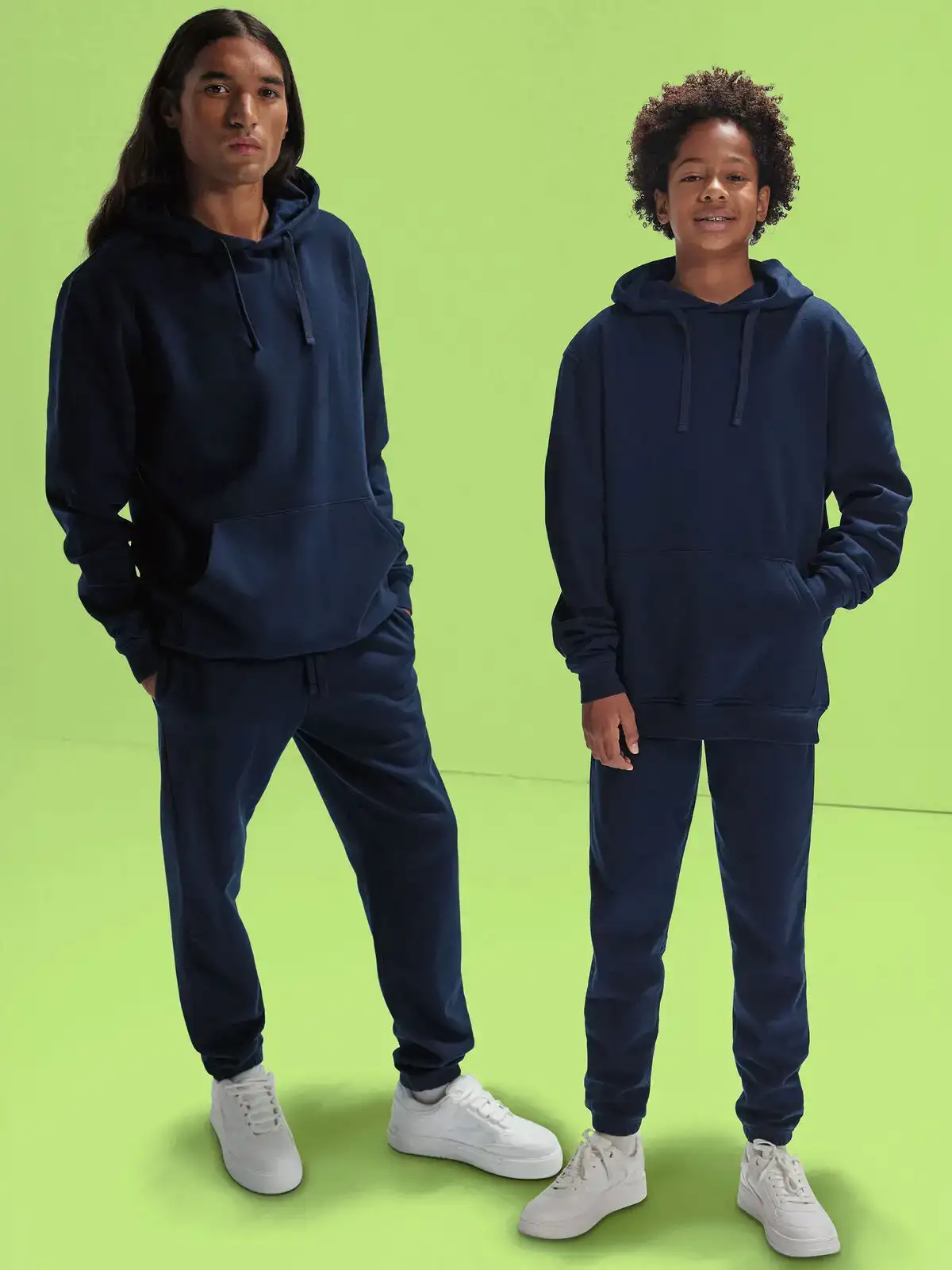 80% cotone, 20% poliestere riciclato. Felpa con cappuccio da bambino con una comoda spalla scesa per facilitare i movimenti, cuciture laterali, cappuccio foderato in jersey singolo, tasca a canguro, polsini classici e orlo inferiore in costina 1x1 con elastan. Felpata internamente, senza etichetta.