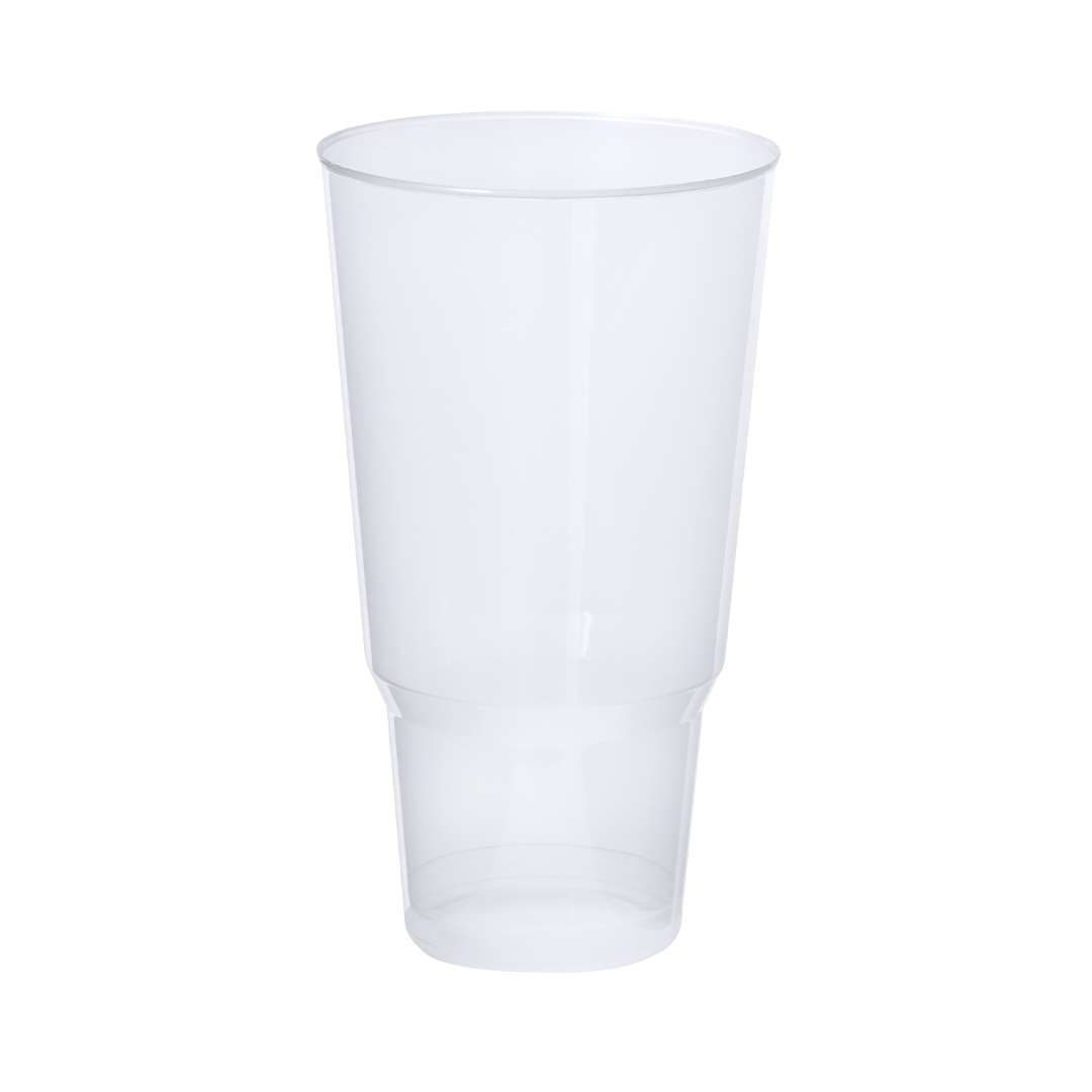 Bicchiere da 1,2 L di capacità in materiale PP resistente e flessibile. Riutilizzabile e con finitura semitrasparente, con una forma speciale sul fondo per adattarsi ai sottobicchieri.