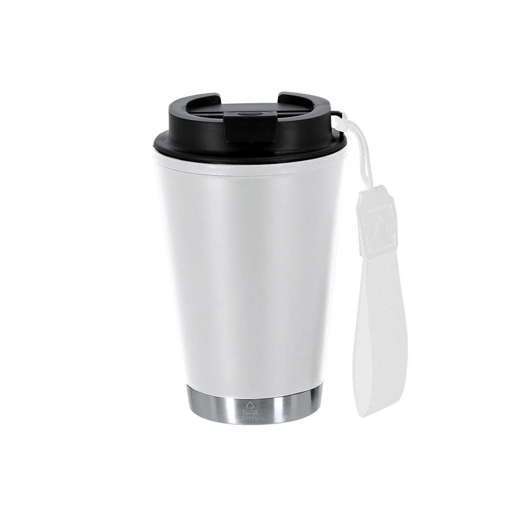 Bicchiere termico a doppia parete in PP riciclato, combinato con base in acciaio inox riciclato. Con capacità di 300 ml. Con tappo con dosatore di facile apertura e sistema di sigillatura ermetica, anti-perdita. Privo di BPA. Include pratica cinghia di trasporto, ideale per portarlo facilmente in qualsiasi situazione. Con certificazione Food Grade, garantendo la sicurezza quando i cibi entrano in contatto con il materiale utilizzato per fabbricare il prodotto. Con distintivo di Acciaio Inox Riciclato. Il PP riciclato è una plastica riciclata e altamente riciclabile, di grande resistenza e adatta per molteplici applicazioni. L'acciaio è uno dei materiali più richiesti e che può essere trovato quasi ovunque, da prodotti di uso quotidiano a grandi costruzioni. Con innumerevoli proprietà, tra cui la durabilità e l'elevato grado di riutilizzo, lo rende un'alternativa molto apprezzata nelle soluzioni di sostenibilità. Adeguatamente trattato, consente di ottenere nuove risorse di utilizzo infinito.