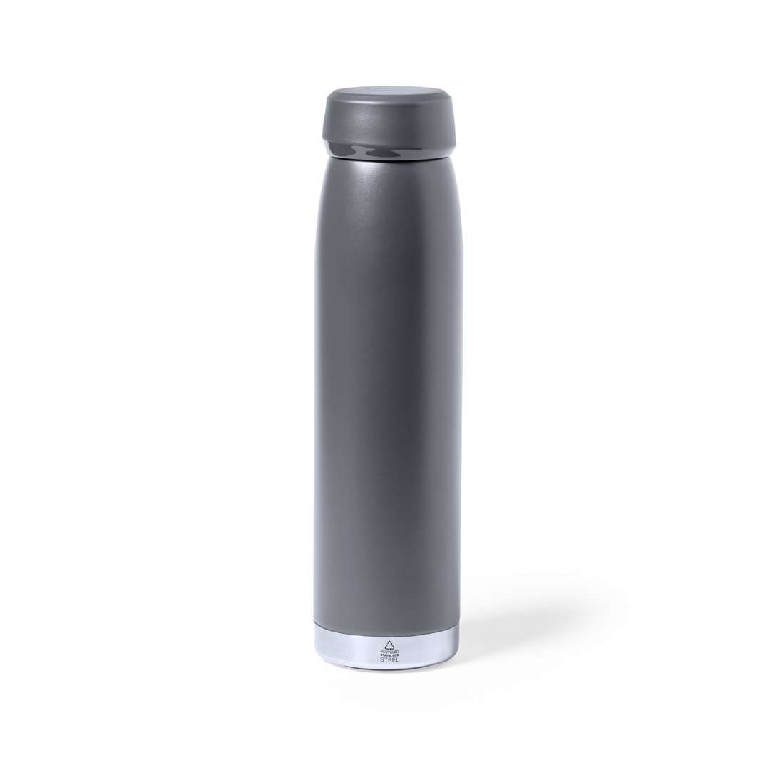 Borraccia termica da 380 ml, realizzata in acciaio inossidabile riciclato a doppia parete, con tappo a vite abbinato e base argentata. Disponibile in una gamma di colori satinati, senza BPA e presentata in una scatola kraft individuale.L'acciaio è uno dei materiali più ricercati e si trova praticamente ovunque, dai prodotti di uso quotidiano alle grandi costruzioni. Le sue innumerevoli proprietà, tra cui la durata e l'alto grado di riutilizzabilità, lo rendono un'alternativa molto apprezzata per le soluzioni di sostenibilità. Se trattata correttamente, permette di ottenere nuove risorse di uso infinito.