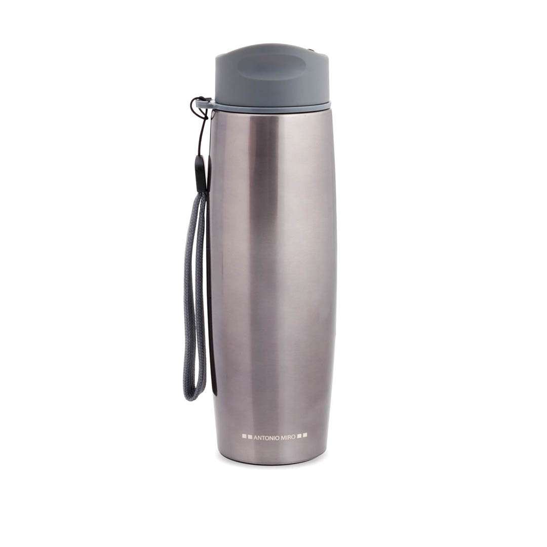 Borraccia termica by Antonio Miró. In acciaio inox, capacità 500 ml, corpo metallico in una combinazione con accessori dai colori sobri. Con tappo dosatore di sicurezza e presentata in una scatola individuale con il logo del marchio.Manuale di istruzioni disponibile in spagnolo e inglese.