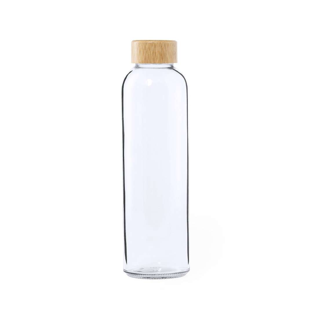 Bottiglia in vetro trasparente da 500 ml con tappo a vite in bambù e senza BPA. Presentato in un'attraente scatola kraft