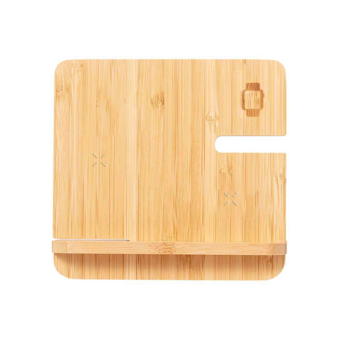 Caricatore multiplo wireless completo da 15W con supporto per gadget, realizzato in bambù. Progettato per la ricarica simultanea di smartphone, cuffie e smartwatch: una versatile stazione di ricarica all-in-one con diversi supporti. Presentato in una scatola dal design kraft. Manuale di istruzioni disponibile in inglese e spagnolo.Materiali come il bambù favoriscono l'utilizzo di materie prime naturali, riducendo le emissioni inquinanti. Proviene da una pianta altamente resistente e versatile, con una crescita e una rigenerazione rapida, rappresentando un'ottima alternativa all'uso del legno tradizionale.Prodotto secondo gli standard RoHS e in conformità ai seguenti requisiti di sicurezza:Sistema di protezione dal surriscaldamento.Sistema di protezione dal sovraccarico.Sistema di blocco per evitare cortocircuiti.