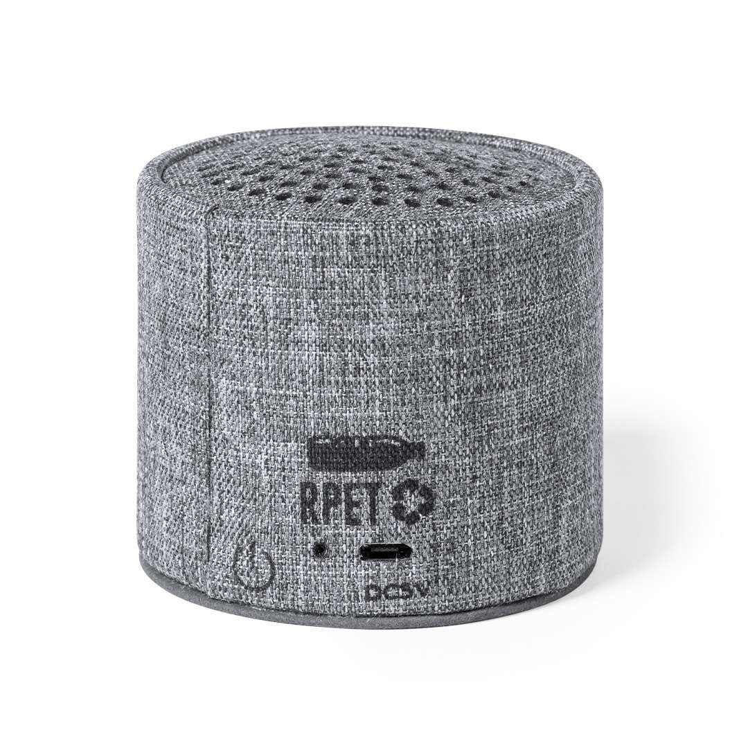 Cassa modello compatto, della linea natura e connessione Bluetooth® 5.0. Corpo in poliestere RPET, realizzato con plastica riciclata, al fine di promuovere il riutilizzo dei rifiuti plastici e aiutare la sostenibilità del pianeta. 3W di potenza, compatibile con iOS e Android. Include un cavo di ricarica micro USB e base antiscivolo. Confezionata in un'attraente scatola di eco-design. Con il distintivo RPET sull'articolo