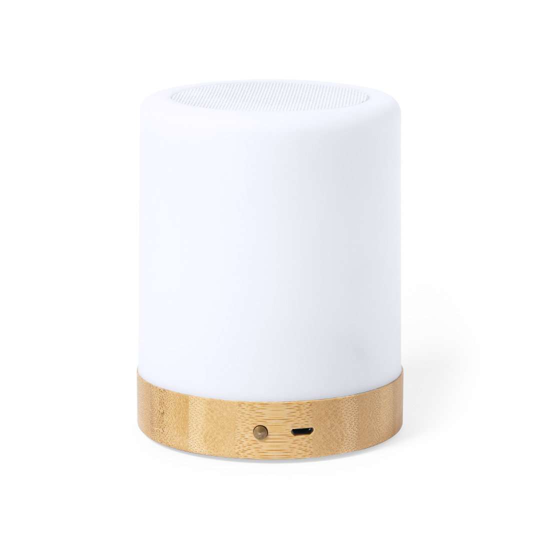 Cassa della linea Natura, prodotta con una combinazione di bambù e resistente ABS. Con tecnologia LED intelligente e connessione Bluetooth® 5.0. Grazie alla tecnologia ILT Smart LED, basta premere con le dita sulla parte superiore dell'altoparlante per cambiare il colore e l'intensità della luce LED come si desidera, combinando le 4 posizioni di luce disponibili. 3W di potenza e piedini in gomma antiscivolo sulla base. Confezionata in un'attraente scatola di eco design.