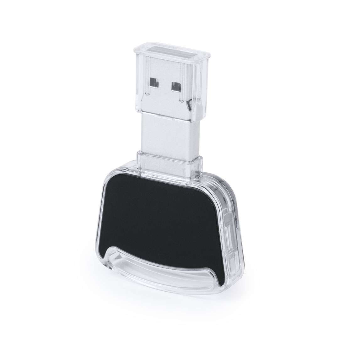 Chiave di memoria USB con capacità di 16 GB. Dall'innovativo design automobilistico, con luce a led all'interno e corpo appositamente progettato per la stampa laser, in modo da illuminare il logo. Presentata in una custodia individuale.