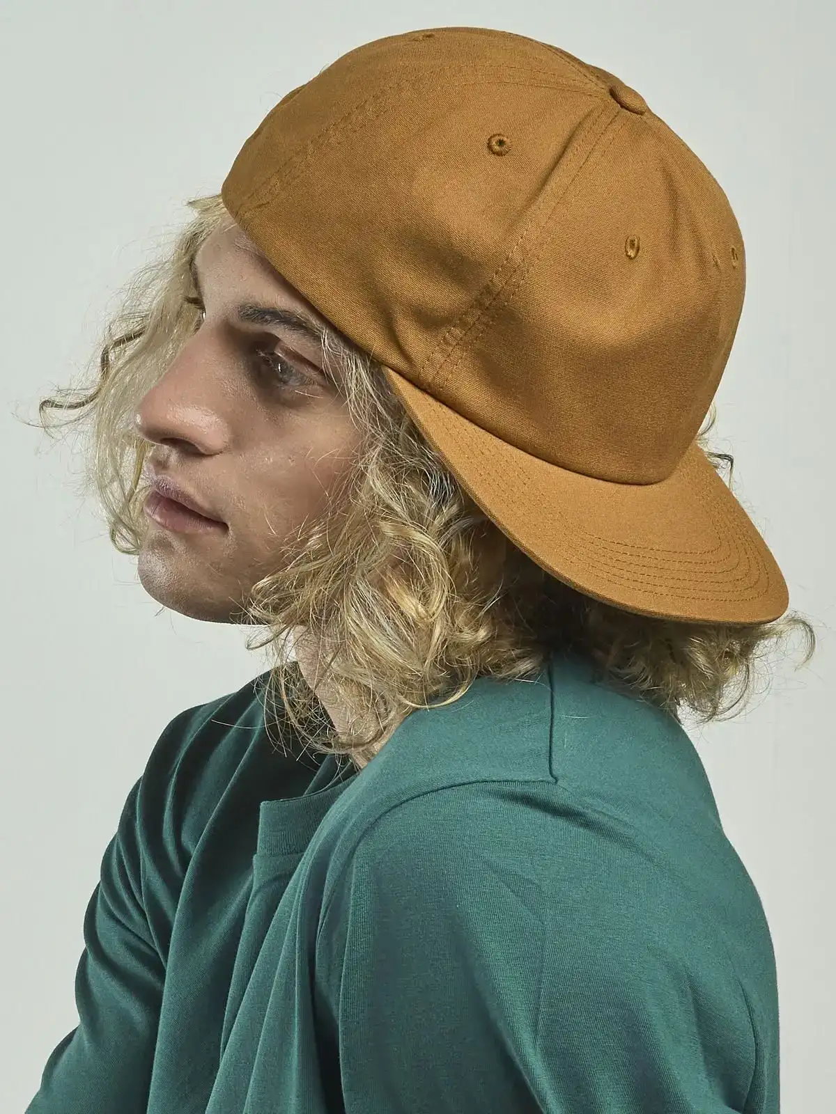 100% cotone canvas organico. Cappello a 5 pannelli in cotone organico e riciclato, con visiera piatta e chiusura snapback in pvc, etichetta removibile.