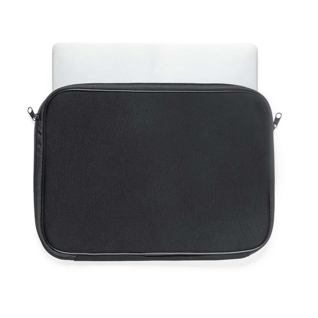 Custodia per laptop, realizzata in resistente soft shell. In un elegante colore nero con interno imbottito. Chiusura a zip con doppio tirante. Adatto a laptop o tablet fino a 13".