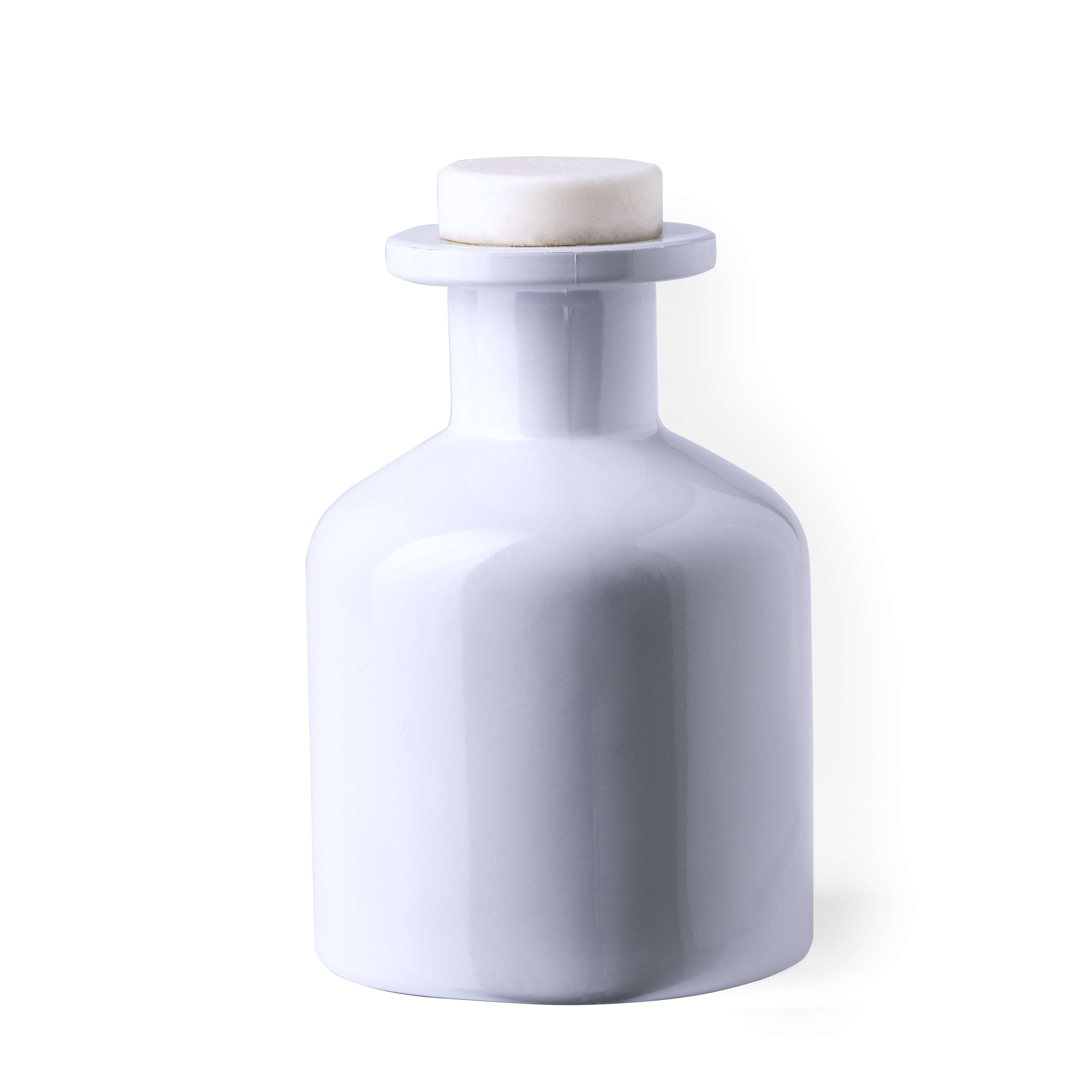Diffusore aromatico da 100 ml, in vetro rifinito da colore pieno. Con 8 bastoncini in rattan e tappo anti-versamento. Profumo di vaniglia versione bianca e di sandalo versione nera. Presentato in una scatola bianca individuale con finestra.