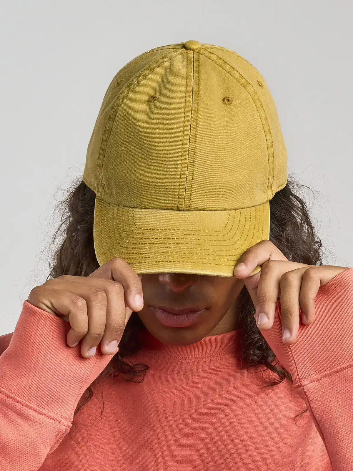 50% cotone riciclato 50% cotone. Cappello a 6 pannelli destrutturati, lavaggio effetto invecchiato, occhielli ricamati, interno della visiera in plastica riciclata, chiusura in fibbia di metallo.