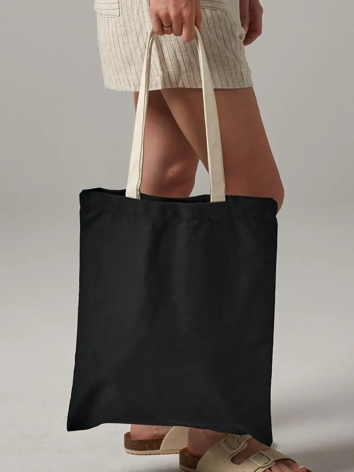 100% cotone canvas. Borsa in cotone certificato OCS, manici in colore contrastante, tessuto resistente, può essere portata a mano o in spalla. Etichetta removibile. Lunghezza manico: 67 cm. Dimensioni: 38 x 42 cm, capacità: 10 litri, area stampabile: 33 x 36 cm.