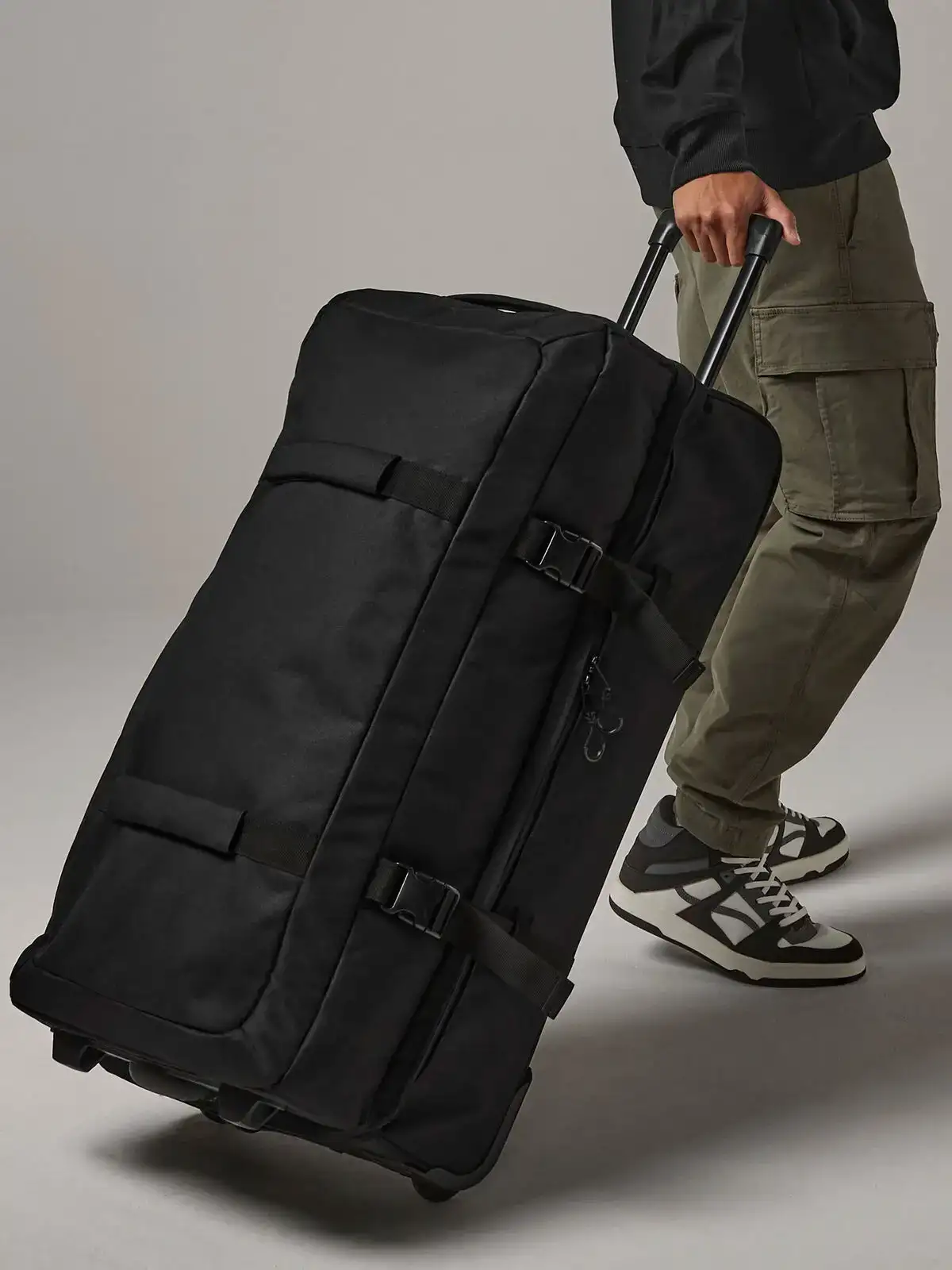 100% Poliestere 600D. Trolley con etichetta removibile TearAway per cambiare più facilmente il marchio, design comodo a doppio scomparto per facilitare la chiusura, cerniera dello scomparto principale con chiusura con blocco, finestrella esterna di identificazione, maniglie rimovibili Rip-Strip™ per facilitare la decorazione, cinghie a doppia compressione, doppia impugnatura retrattile ad alta stabilità, resistenti maniglie anteriori. Top imbottito e maniglie laterali, ruote integrate resistenti a carichi pesanti, può essere ulteriormente personalizzato con BG485.Dimensioni: 42 x 81 x 36 cm. Capacità: 100 litri. EasyPanel 15x3.5 fast frame. Massima Area di stampa: frontale 25x25 cm. EasyPanel™ 15x3.5 cm.