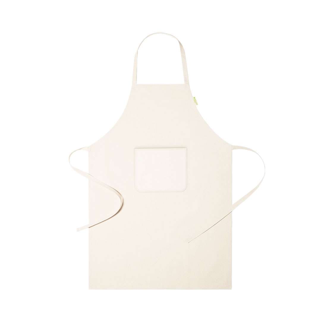 Grembiule linea Nature, realizzato in materiale di cotone organico al. Con tasca frontale e spalline regolabili, taglio sotto il ginocchio. Etichetta distintiva in cotone biologico.