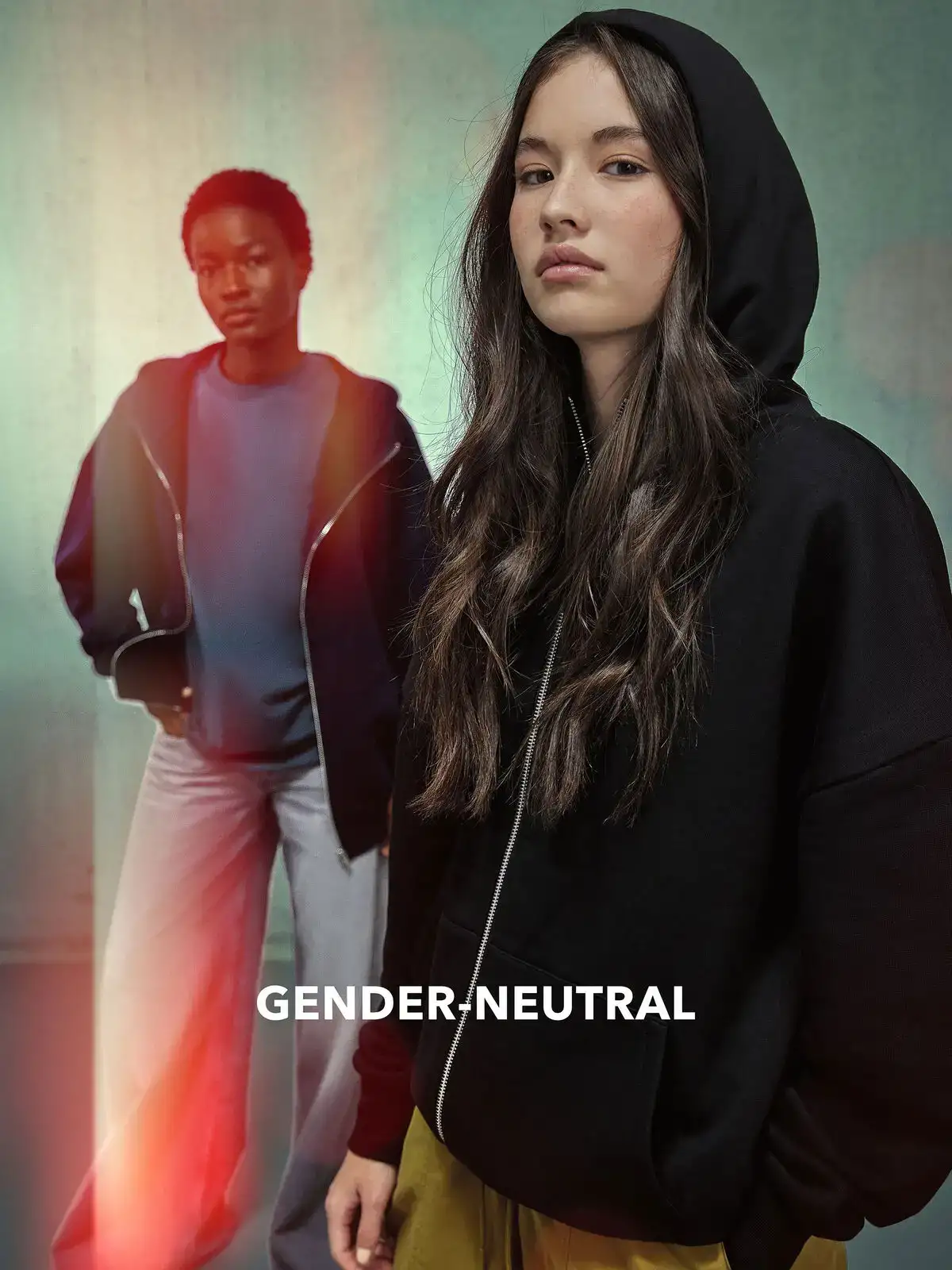 80% cotone 20% poliestere riciclato. Felpa zip e cappuccio, spalle scese e taglio oversize, gender-neutral, colletto alto, tessuto PST, felpata internamente, cappuccio foderato in jersey, senza coulisse, cerniera in metallo. Col. SG620: 73% cot. 21% pol.ric. 6% vis.