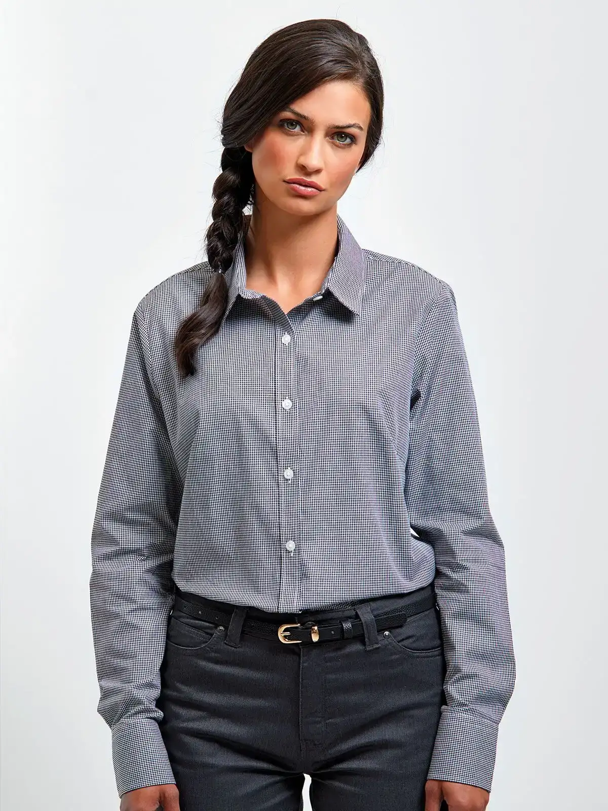 Ladies' Long Sleeve Microcheck Gingham Shirt - Premier