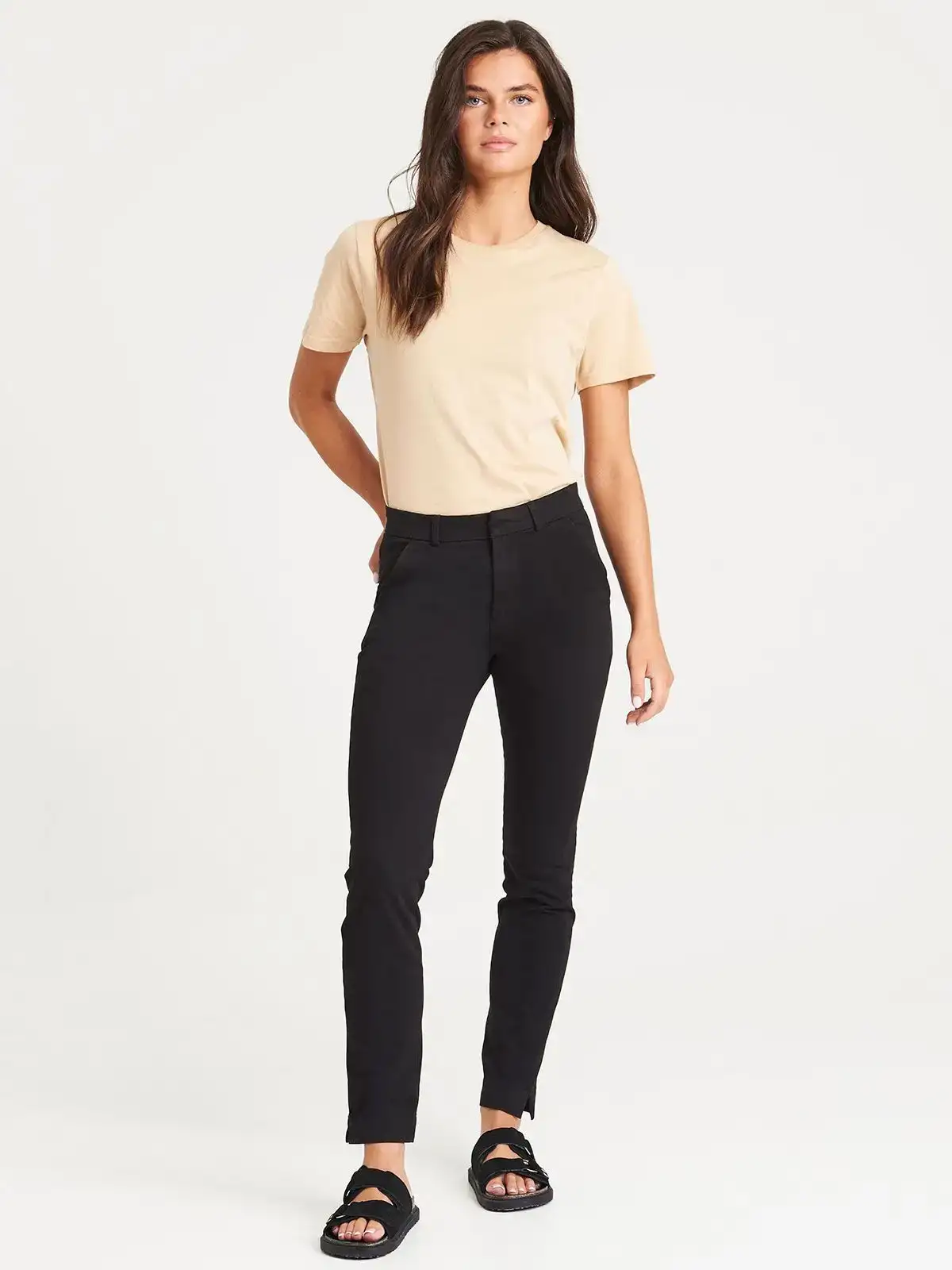 98% cotone, 2% elastan. Pantaloni donna skinny fit. Tasche frontali e posteriori con bottone di chiusura. Passanti per cintura, bottone in vita e chiusura con zip YKK. Massimo comfort e libertà di movimento.
