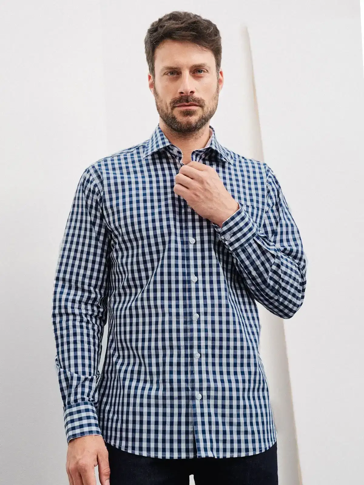 100% cotone. camicia fashion a quadri con inserti in tinta unita sul colletto e polsini. Tessuto in popeline di alta qualità, stiro facile, orlo arrotondato, taglio classico leggermente avvitato tasca sul petto.