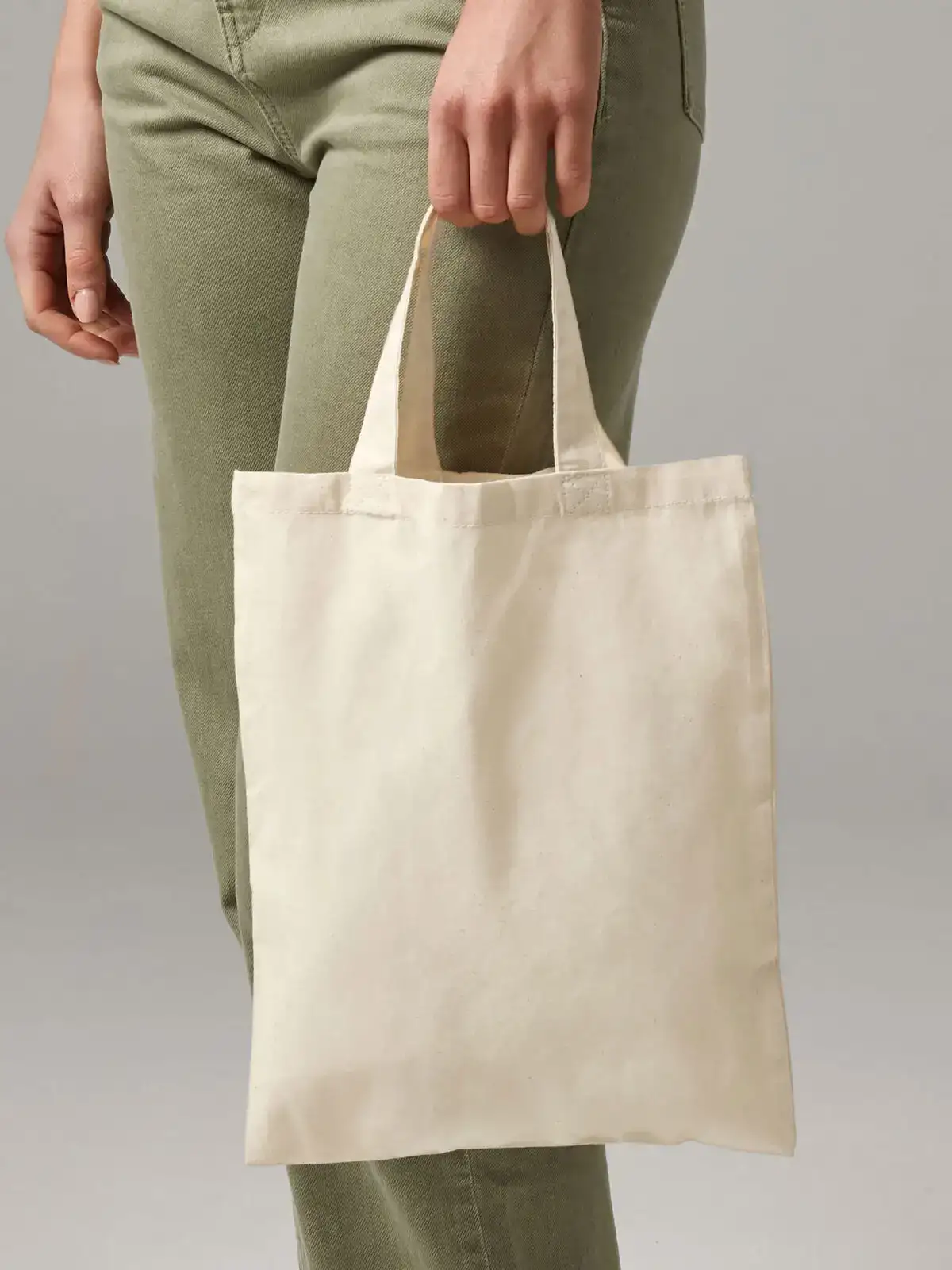100% cotone. Shopper multiuso. Etichetta removibile. Lunghezza manico: 30 cm, dimensioni: 26 x 32.5 cm, capacita': 4 litri, area stampabile: 22 x 26 cm.