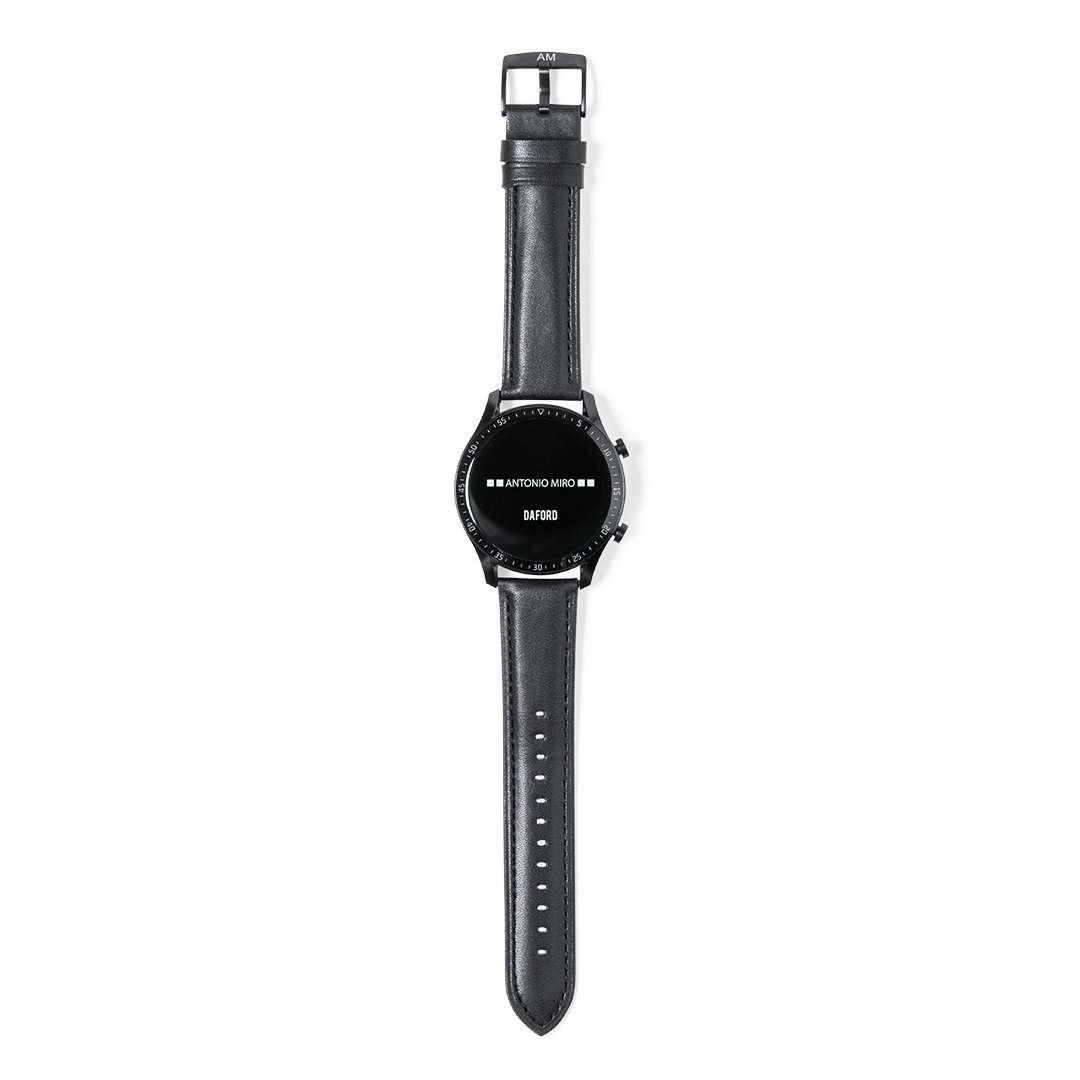 Orologio intelligente multifunzione di Antonio Miro, dal design elegante e moderno in qualità premium e stile senza tempo. Cinturino in pelle e display TFT da 1,32 pollici, con connessione Bluetooth e molteplici funzioni integrate, che lo rendono un gadget perfetto per luso quotidianoResistente agli spruzzi dacqua, con APP disponibile per iOS e Android. Include un manuale di istruzioni in inglese e spagnolo.Presentato in unattraente scatola dal design premium di colore nero con logo del marchio.