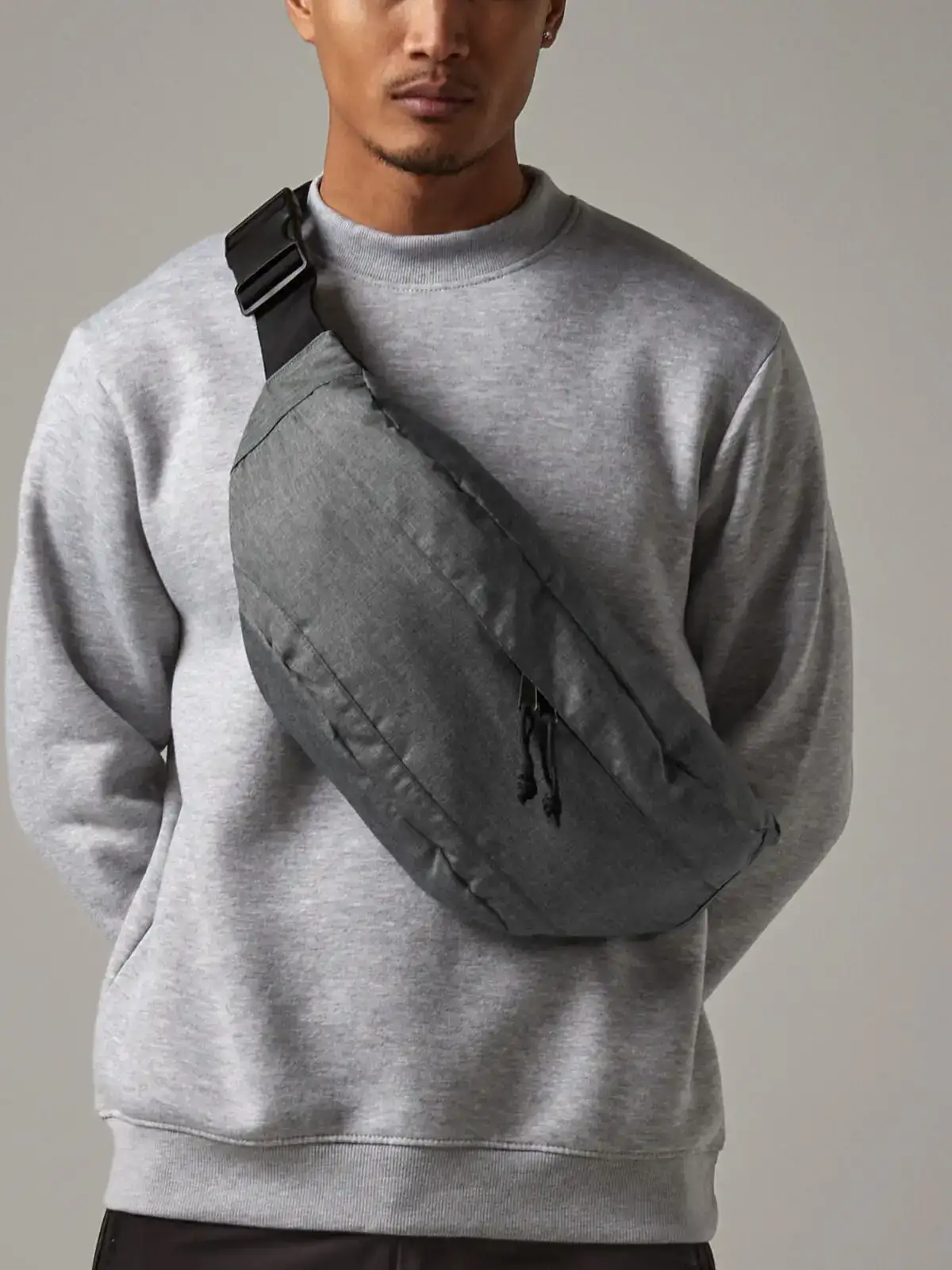 100% 300D poliestere. Marsupio con ampio scomparto principale, tasche interne con zip, piccolo scomparto con cerniera sul retro, cinturino regolabile con chiusura a clip. Dimensioni: 47x20x8 cm, capacità: 6 litri, area di stampa massima 26x8 cm.