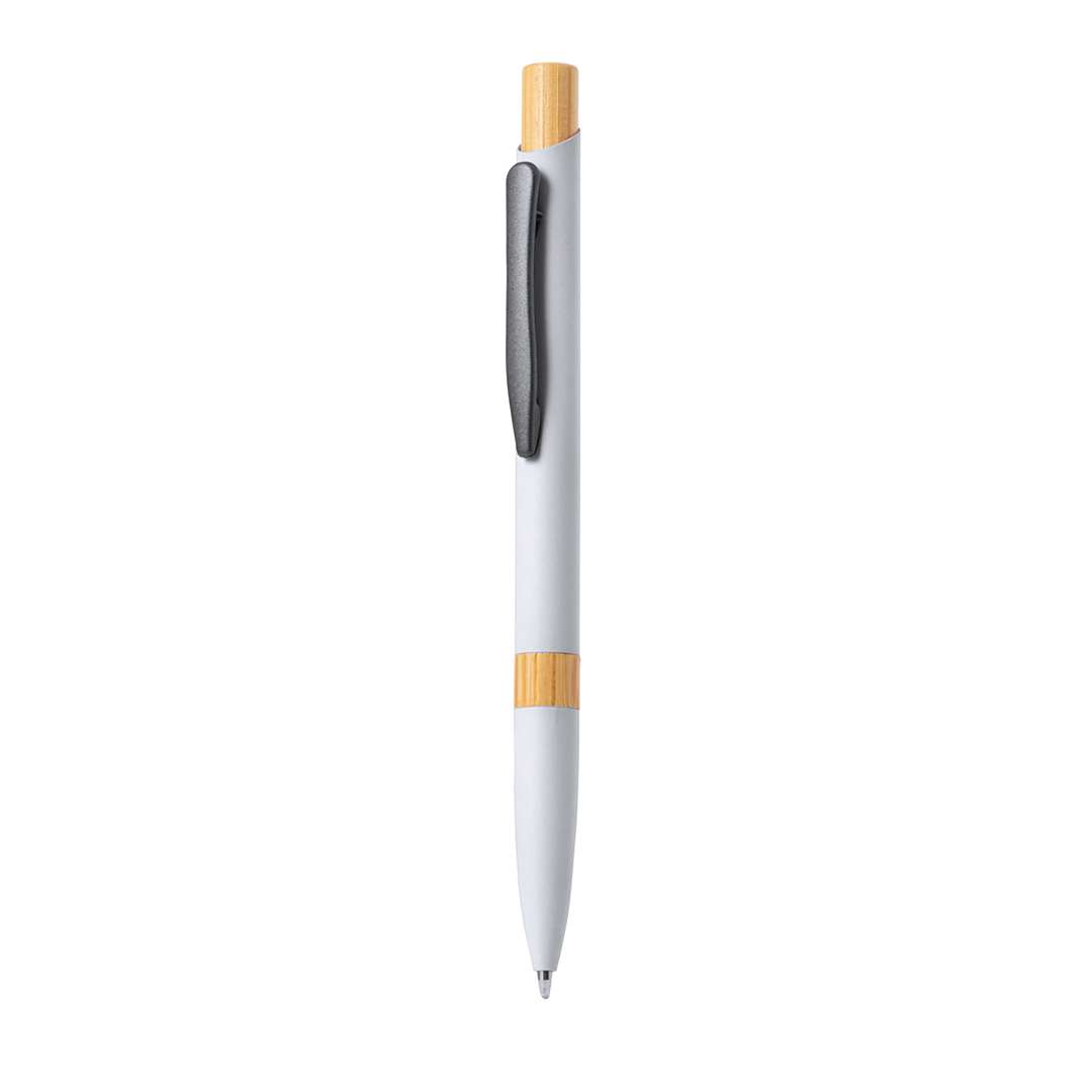 Elegante penna in alluminio con meccanismo a pulsante. Robusto fusto in alluminio con finitura gommata opaca e inserti in bambù, con fusto in una gamma di colori esclusivi. Clip in metallo a caricamento, ricarica ju,bo e inchiostro blu. Presentato in un astuccio individuale riciclato.Materiali come il bambù favoriscono l'utilizzo di materie prime naturali, riducendo le emissioni inquinanti. Proviene da una pianta altamente resistente e versatile, con una crescita e una rigenerazione rapida, che lo rende un'ottima alternativa all'uso del legno tradizionale.