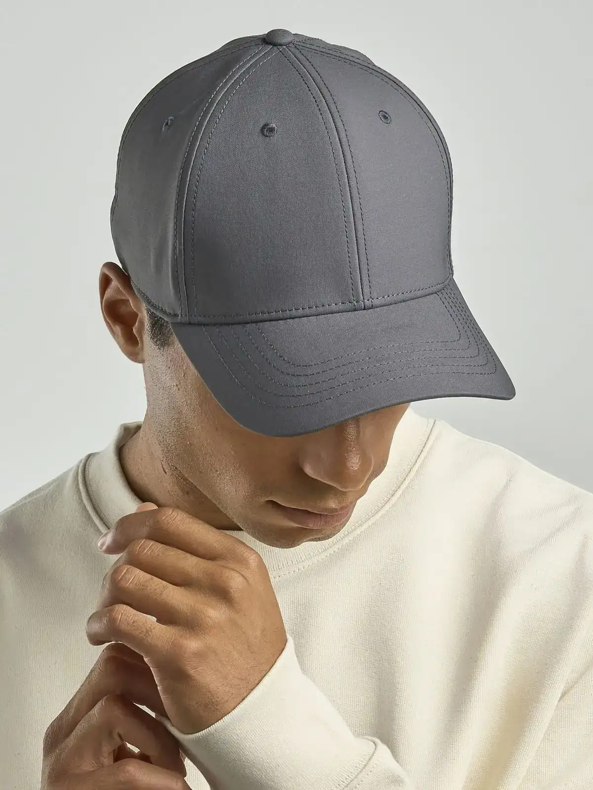 95% poliestere riciclato twill 5% elastane. Cappello 6 pannelli in poliestere riciclato ed elastane, in doppia taglia, mid visor, etichetta removibile. Vecchio codice: ATPITB