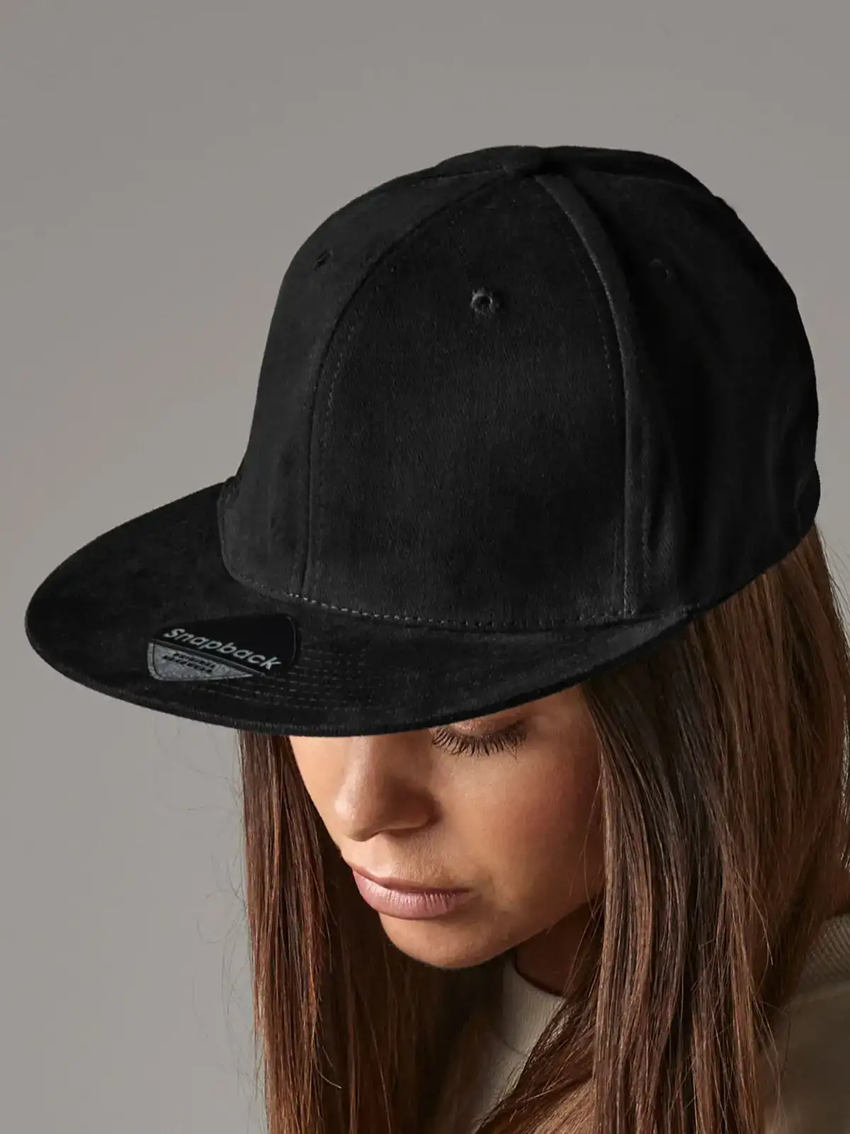 98% cotone 2% elastane. Cappellino a 6 pannelli elasticizzato con visiera piatta, occhielli di ventilazione cuciti, bottoncino piatto, etichetta removibile, taglia unica.