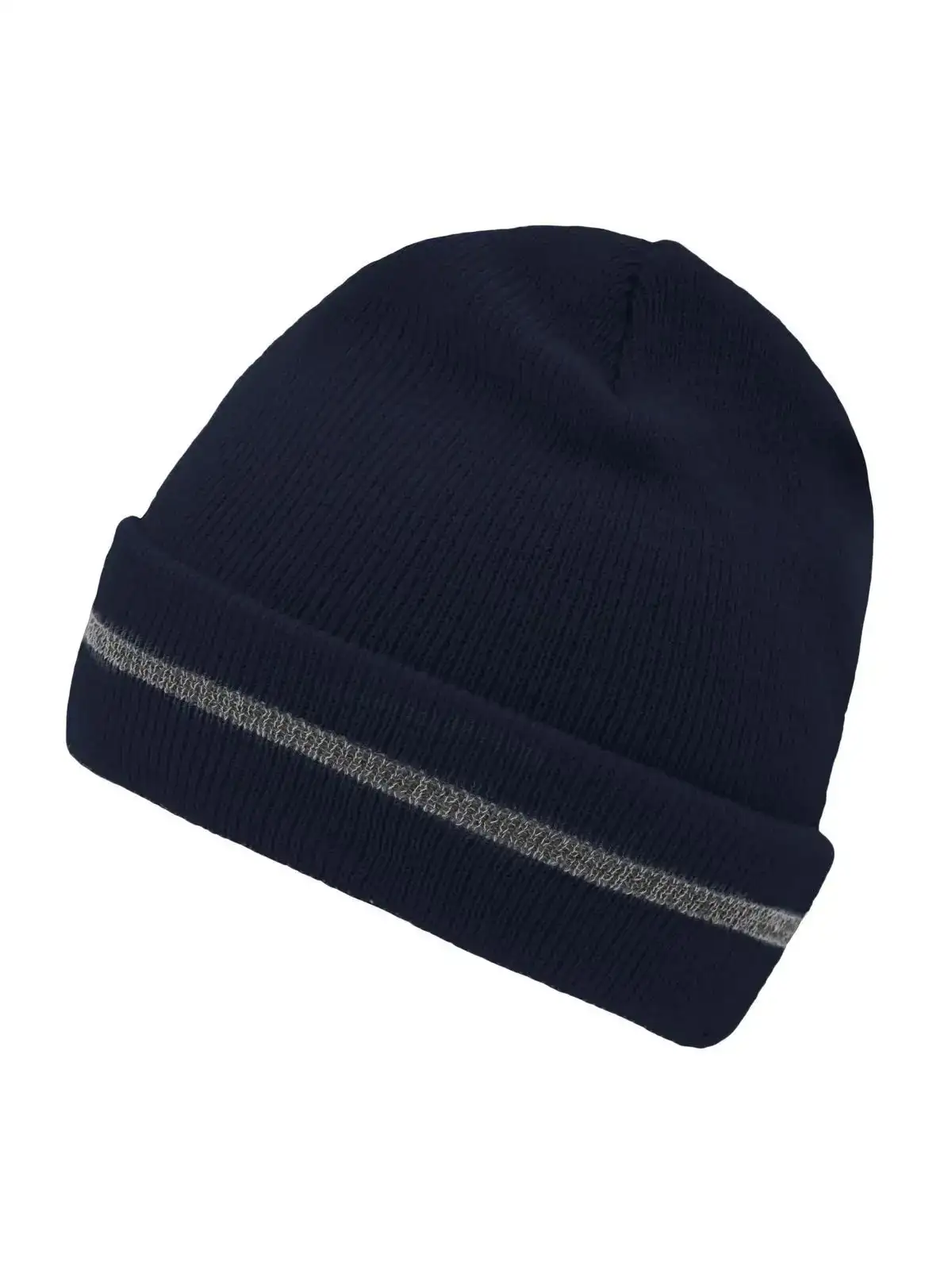 100% poliacrilico. Berretto lavorato a maglia con striscia riflettente sull'orlo (senza funzione protettiva / nessun DPI), maglia a doppio strato.