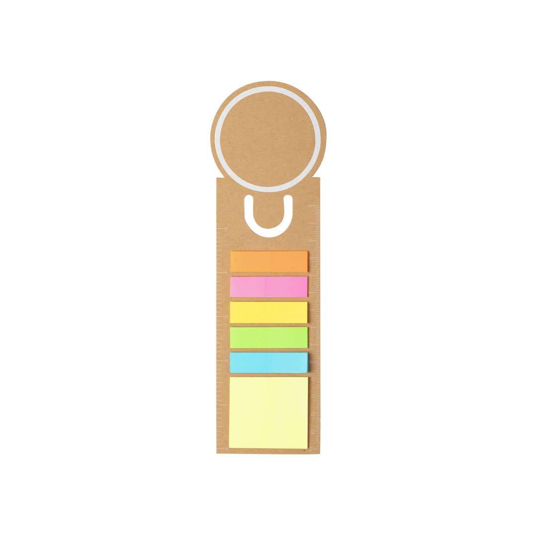 Righello segnalibro linea natura. In cartone riciclato con una grande superficie di marcatura. Include 15 note adesive medie e 75 mini note adesive