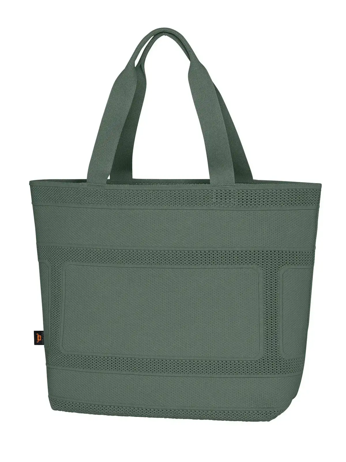 100% poliestere. Shopper in maglia, con motivo a quadri, ampio scomparto principale con organizer agganciato, tracolla ergonomica.