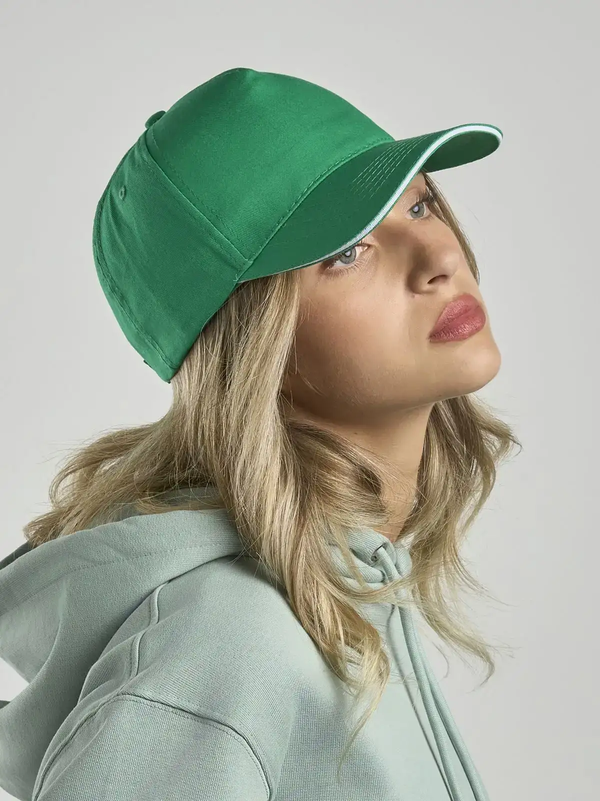 100% cotone. Cappellino 5 pannelli, chiusura con velcro a strappo, taglia unica.