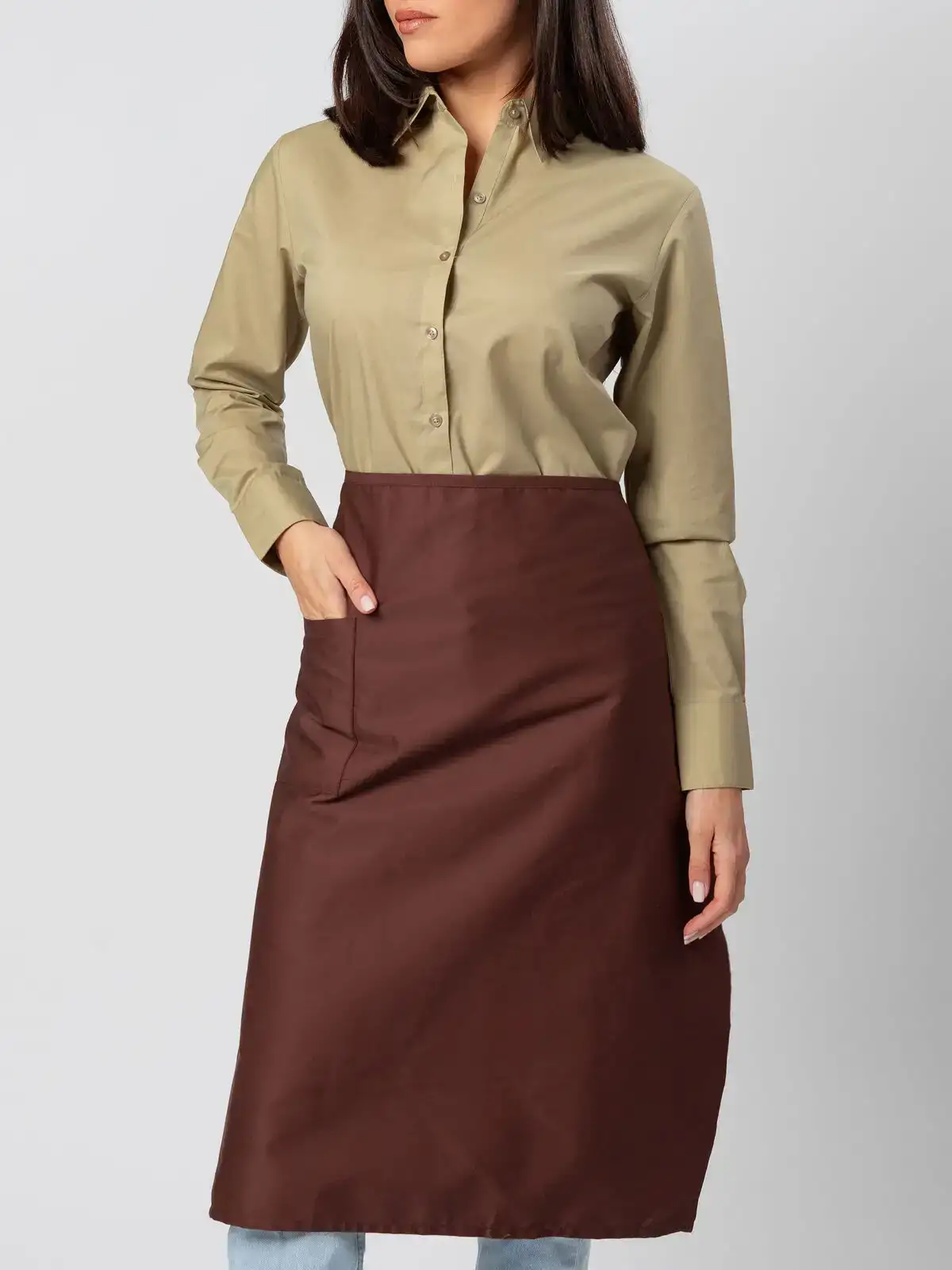 65% poliestere, 35% cotone. Grembiule resistente pensato per il settore Ho.Re.Ca., ideale per cucina, sala e catering. Realizzato in tessuto misto 65% poliestere e 35% cotone, garantisce durata e facilità di manutenzione. La versione bianca è in 100% cotone.