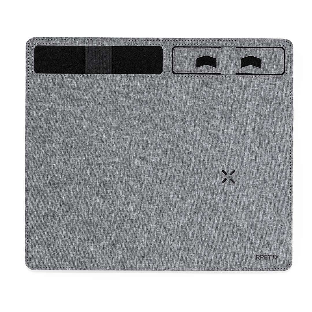 Elegante e funzionale tappetino per mouse realizzato in morbido poliestere RPET. Con ingresso Type-C - cavo Type-C nero incluso - e caricatore wireless da 15W, compatibile con i dispositivi dotati di tecnologia di ricarica wireless Qi. Include un supporto per smartphone e un portapenne. Con base antiscivolo che garantisce stabilità e comfort di utilizzo. Include un manuale di istruzioni in inglese e spagnolo. Presentato in una scatola individuale dal design kraft e in un sacchetto riciclato.Il materiale RPET è realizzato con plastica riciclata per incoraggiare il riutilizzo dei rifiuti plastici e contribuire alla sostenibilità del pianeta.Prodotto secondo gli standard RoHS e in conformità ai seguenti requisiti di sicurezza:Sistema di protezione dal surriscaldamento.Sistema di protezione dal sovraccarico.Sistema di blocco per evitare cortocircuiti.