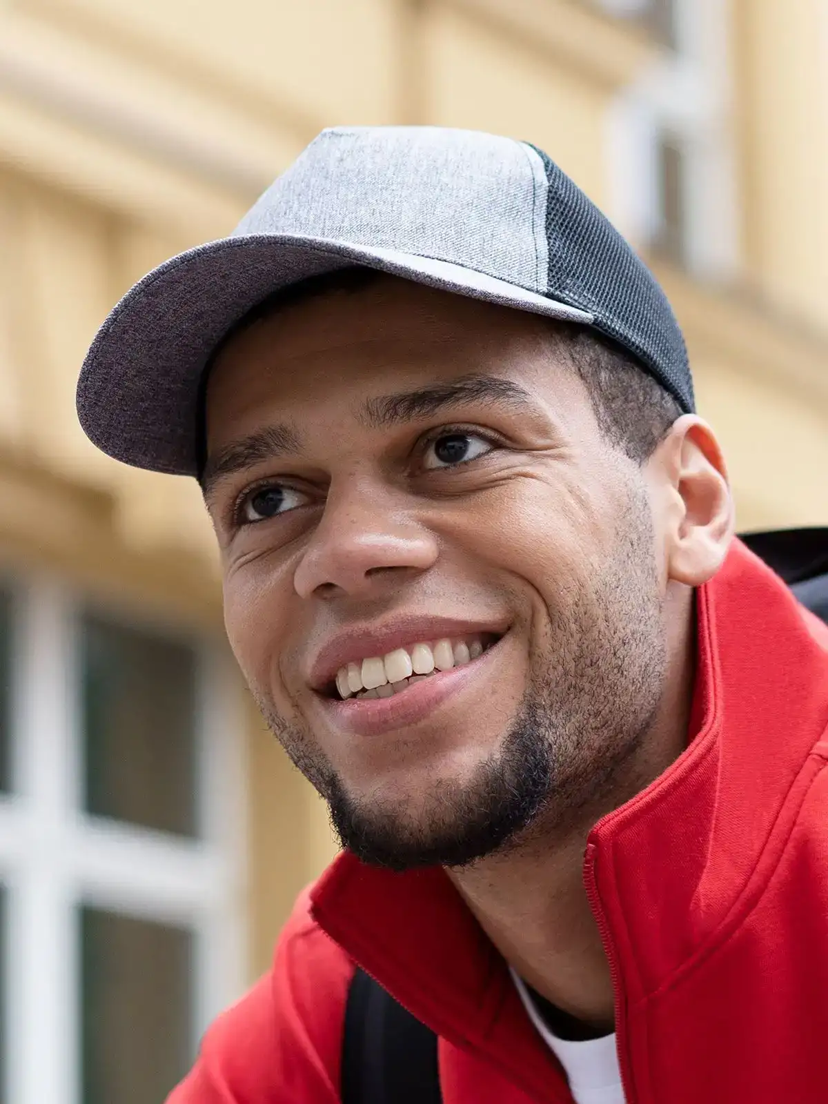Tessuto esterno: 100% poliestere riciclato, 210 g/m². Lato inferiore visiera: 100% poliestere riciclato, 210 g/m². Mesh: 100% poliestere riciclato, 110 g/m². Cappellino trucker sostenibile con mesh, 5 pannelli, visiera curva, regolabile chiusura Click & Snap, fascia antisudore integrata, pannelli in rete sulla parte posteriore, 6 cuciture ornamentali sulla visiera. STANDARD 100 by Oeko-Tex®.