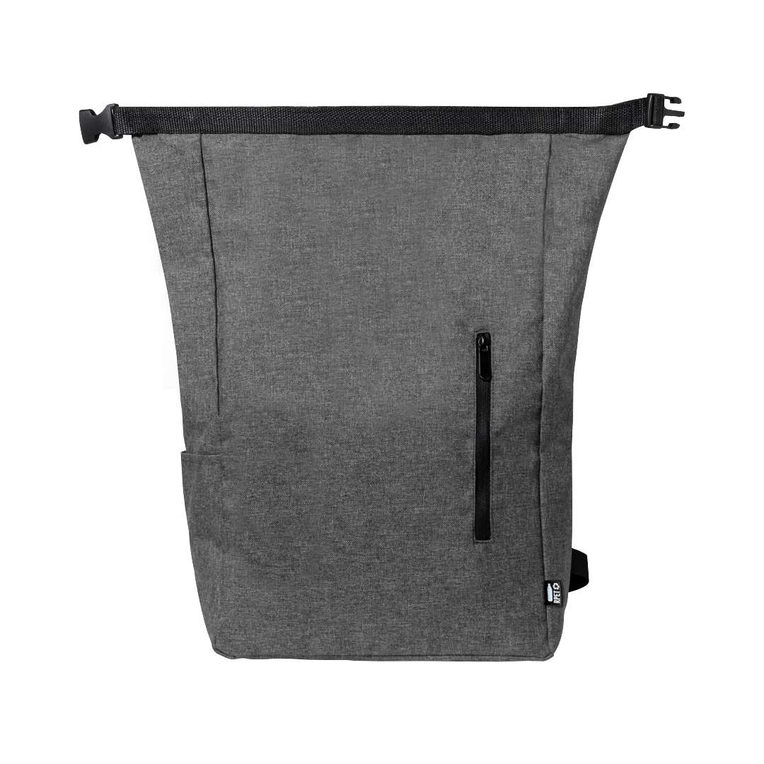 Zaino della linea Natura realizzato in resistente 300D RPET, plastica riciclata, per incoraggiare il riutilizzo dei rifiuti plastici e contribuire alla sostenibilità del pianeta. Tasca principale con chiusura a fibbia e tasca laterale. Spallacci imbottiti regolabili e distintivo RPET sull'etichetta esterna.